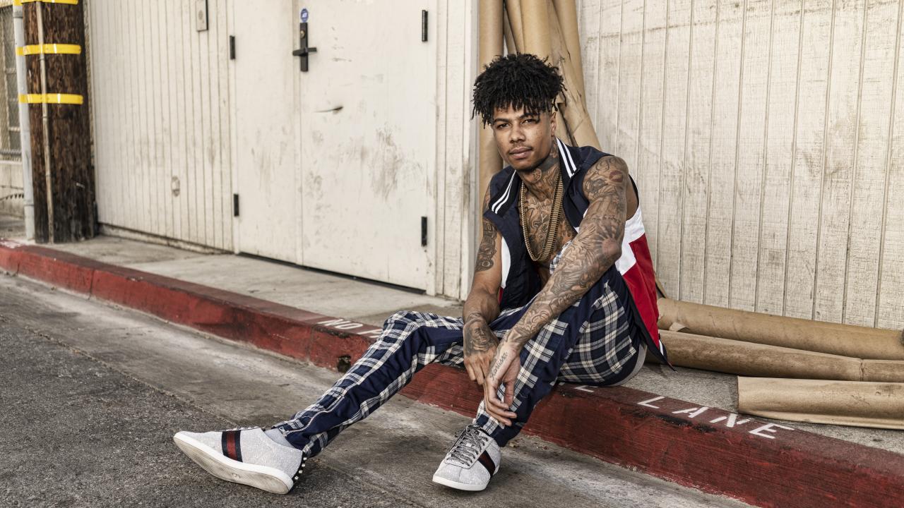 Wallpaper American rapper Blueface with body tattoos