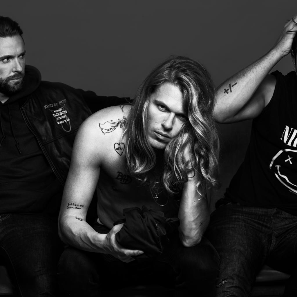 Wallpaper Trio of Kris Kross Amsterdam in suits on a gray background
