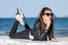 Wallpaper Girl in a black leather jacket, singer Dua Lipa