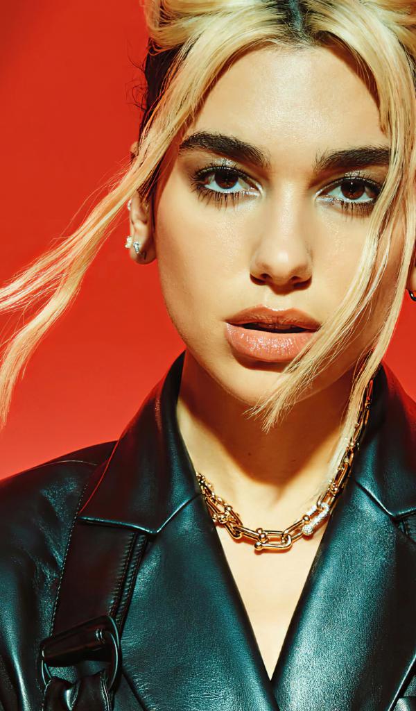 Wallpaper Girl in a black leather jacket, singer Dua Lipa