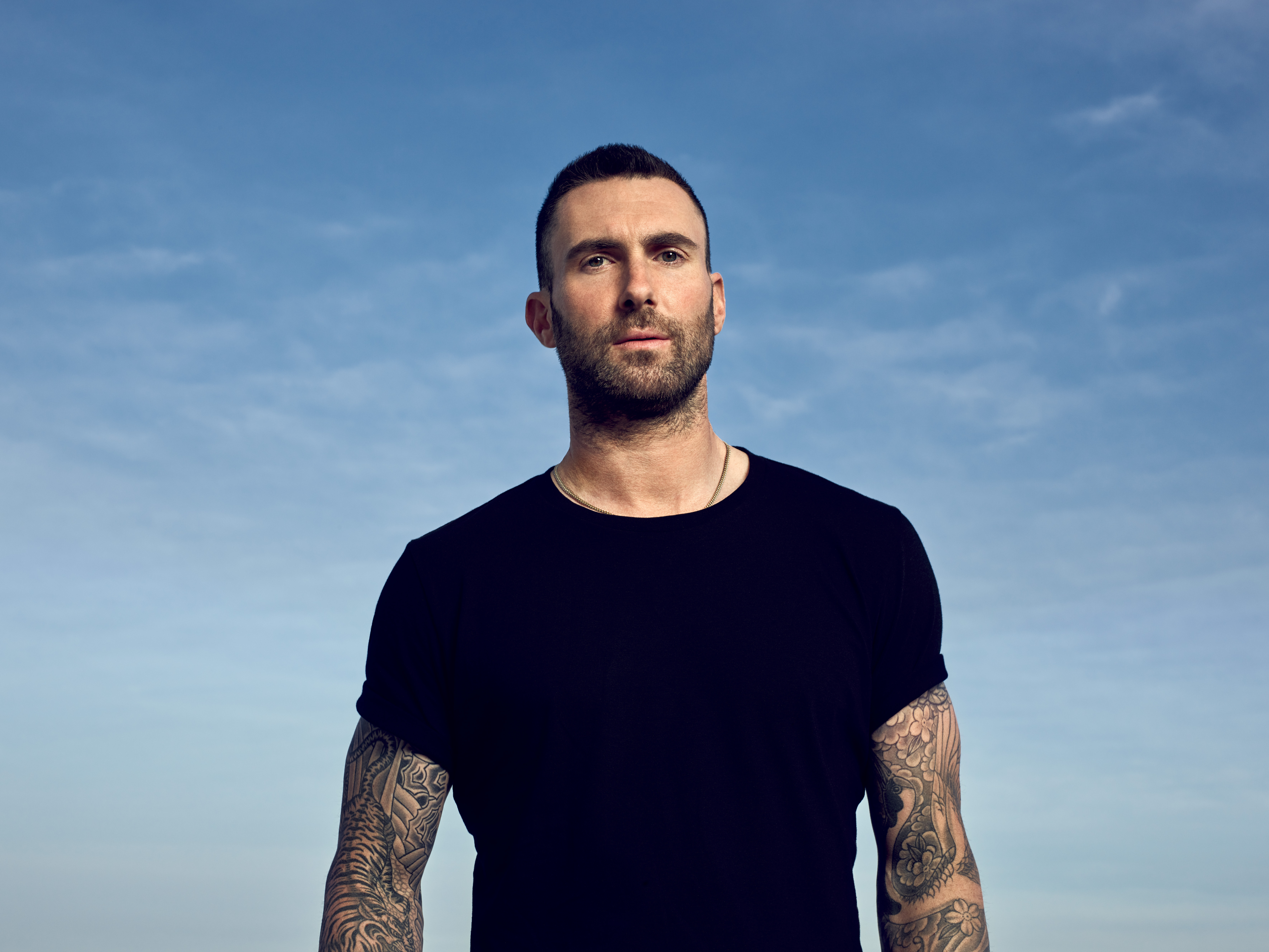 » Wallpaper American singer Adam Levin on sky background