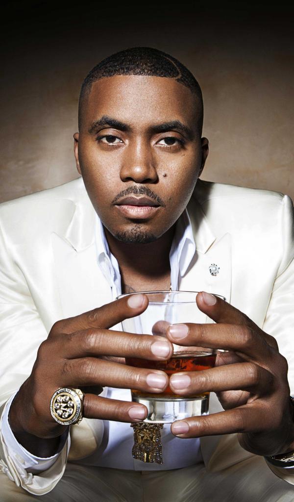 Wallpaper American rapper Nas with a glass in his hands