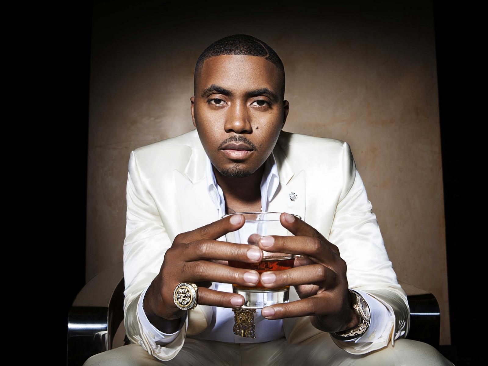 Wallpaper American rapper Nas with a glass in his hands