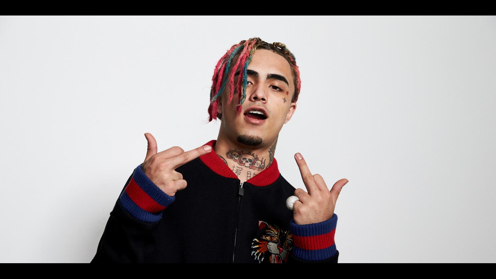 Wallpaper American rapper Lil Pump on a gray background