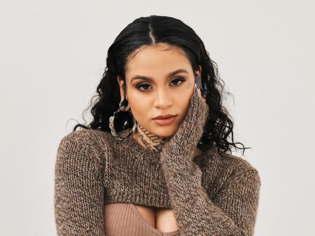 Wallpaper American singer Keilani in a sweater on a gray background