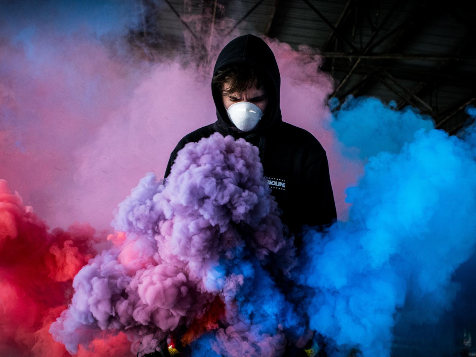 Wallpaper Masked man with colorful smoke bombs