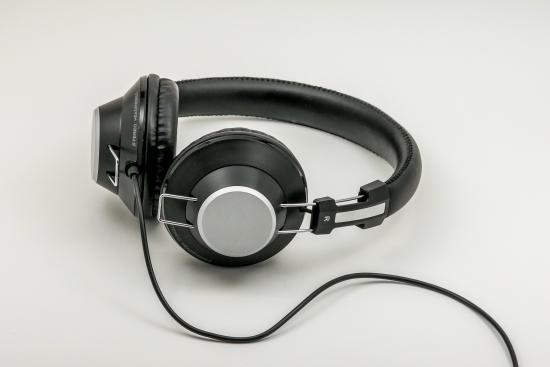 Wallpaper Big black headphones on gray background