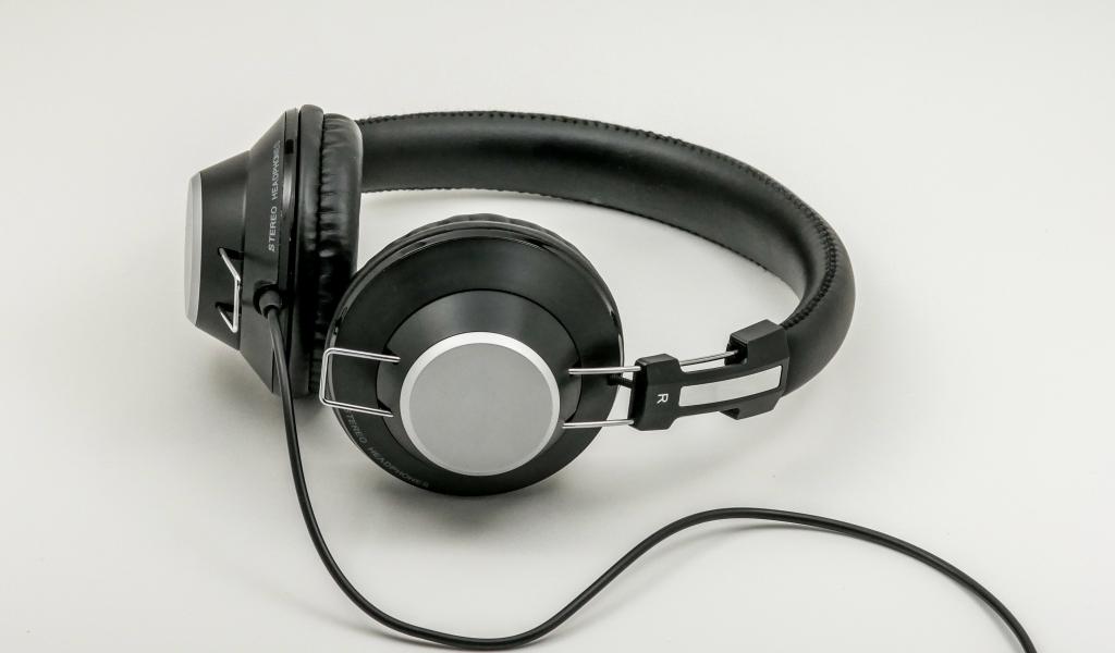 Wallpaper Big black headphones on gray background