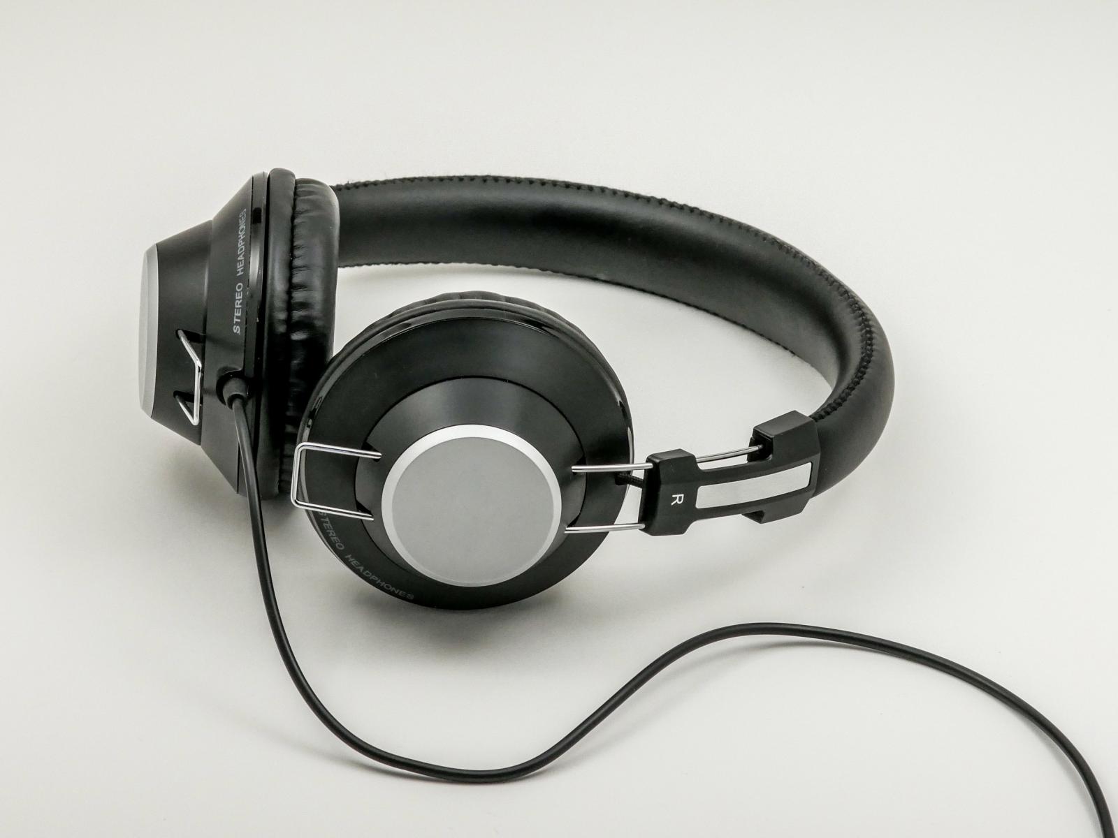 Wallpaper Big black headphones on gray background