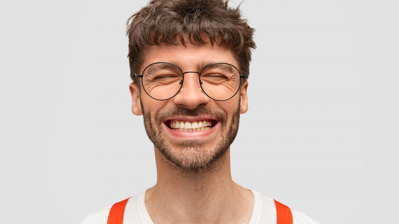 » Wallpaper Smiling bearded man wearing glasses
