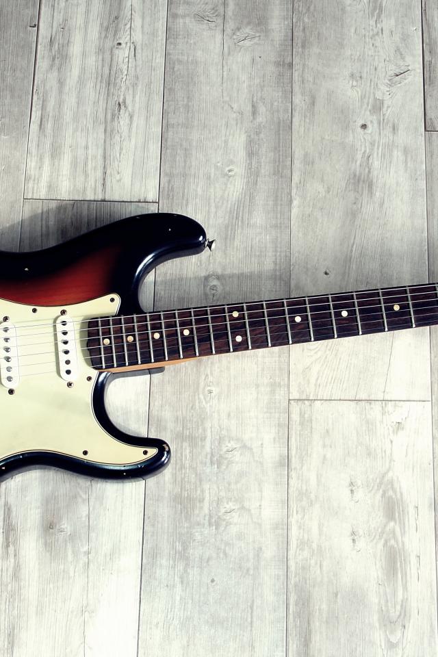 Wallpaper Electric guitar lies on the wooden floor