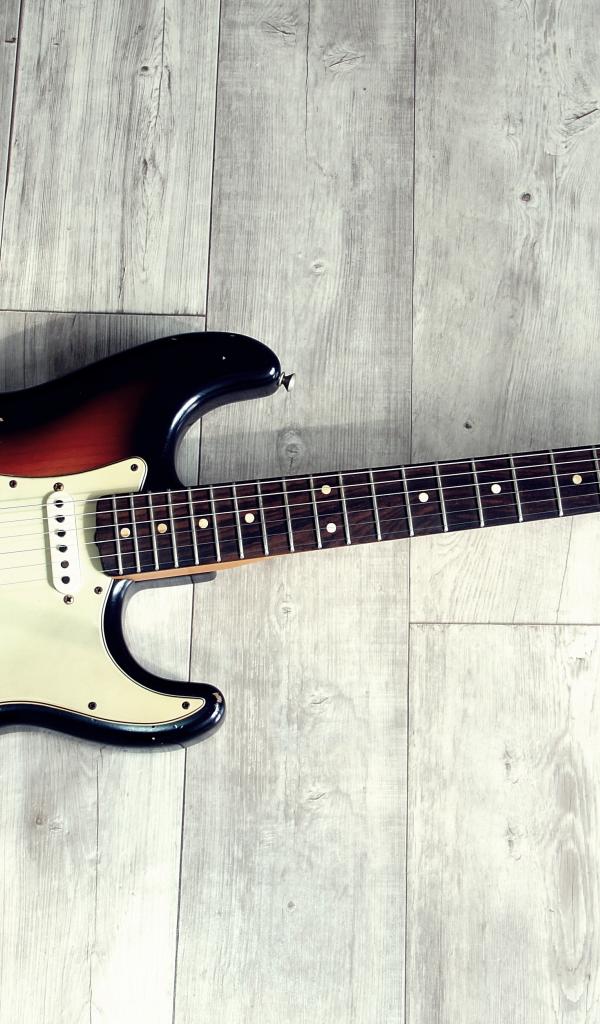 Wallpaper Electric guitar lies on the wooden floor