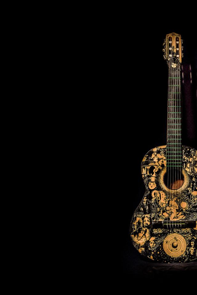 Wallpaper Beautiful guitar with a pattern on a black background
