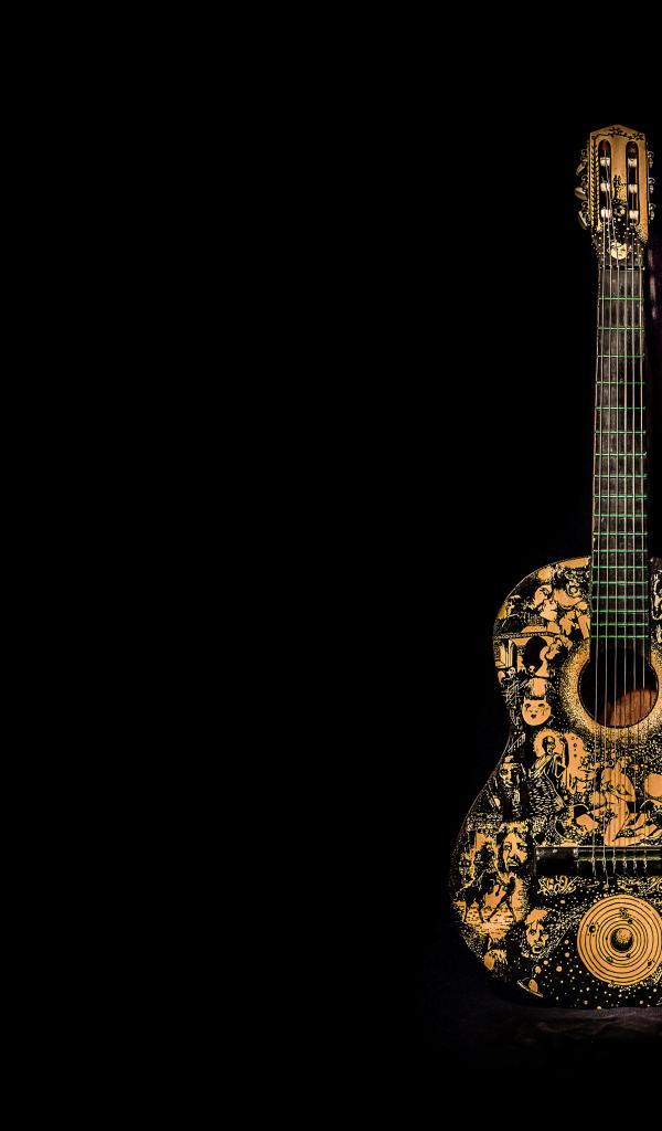 Wallpaper Beautiful guitar with a pattern on a black background