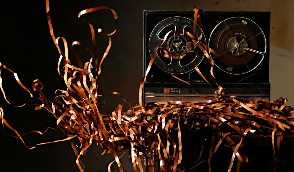 Wallpaper Sleeping baby in headphones and with a toy tape recorder