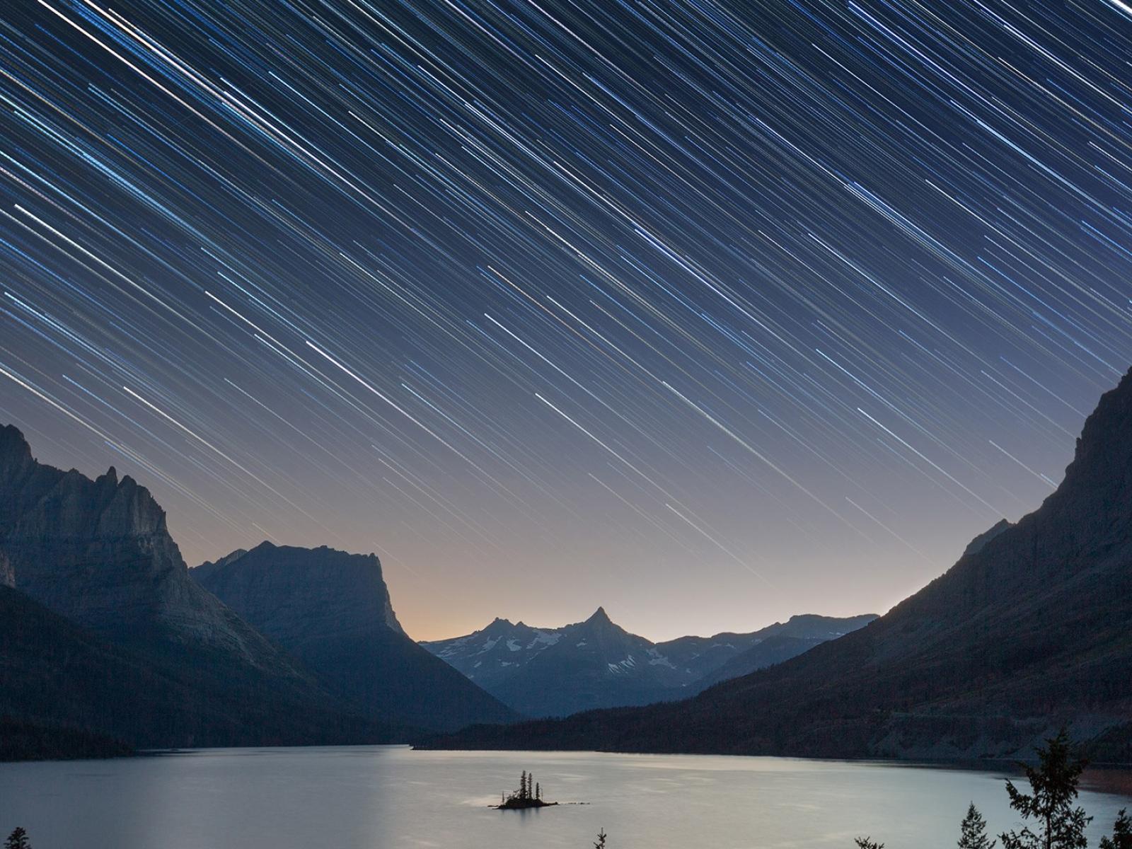 Wallpaper Star rain on a Norwegian fjord