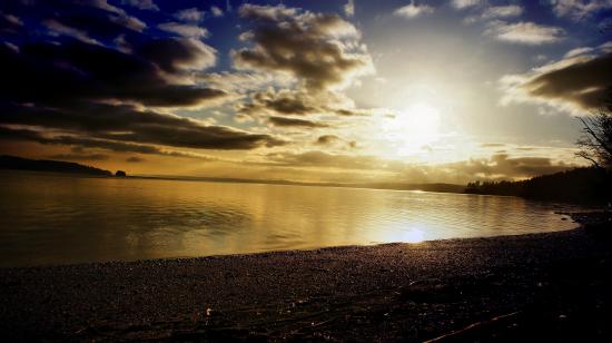 Wallpaper Sunset and clouds over the sea