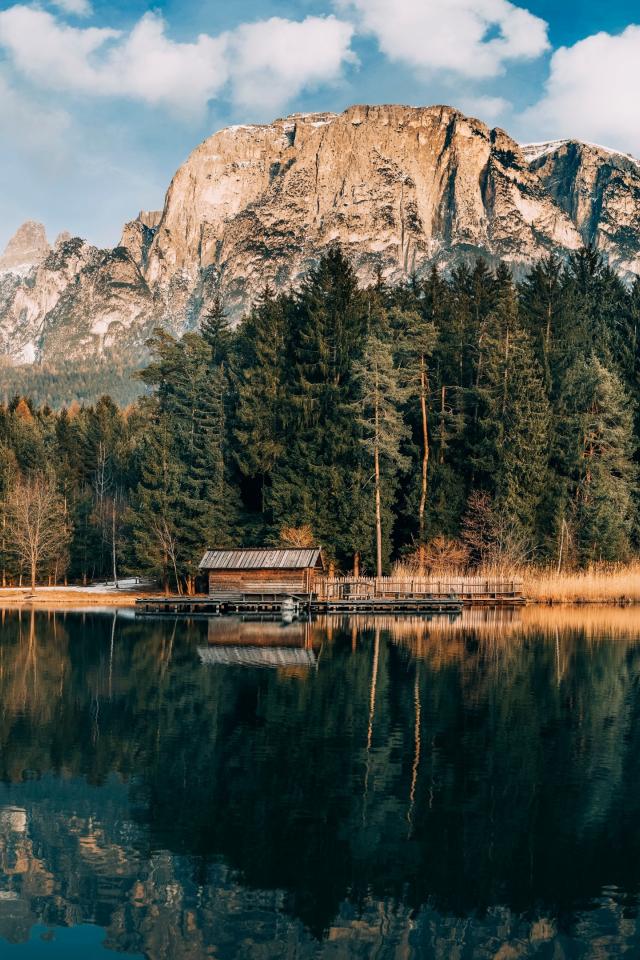 Wallpaper Pine forest and mountain reflected in the lake
