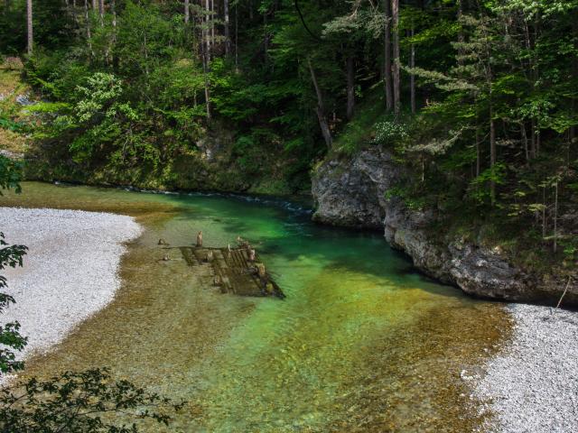 Wallpaper River near the stone cliff