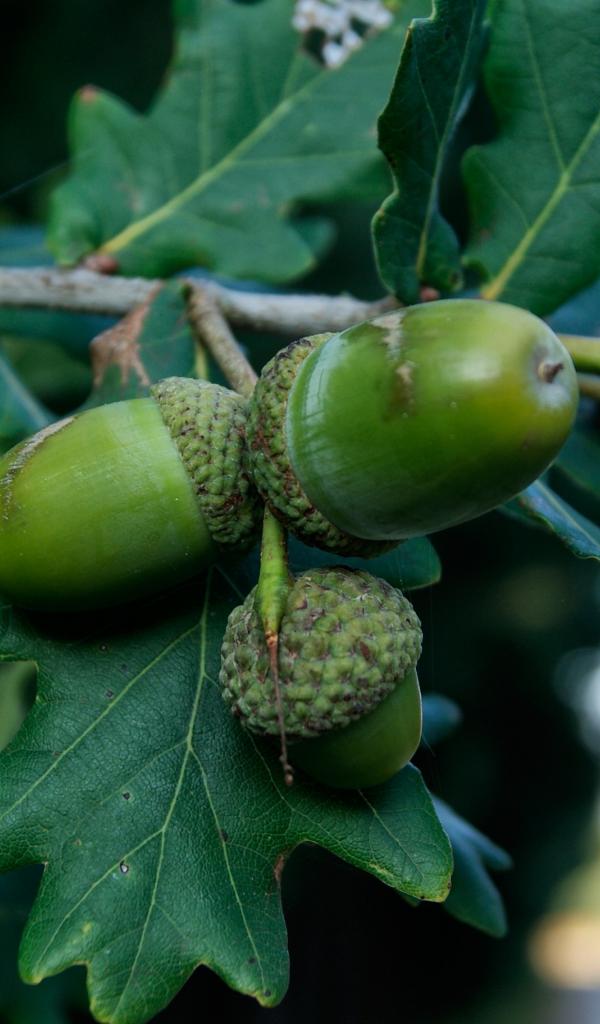 Wallpaper Green acorns on a branch