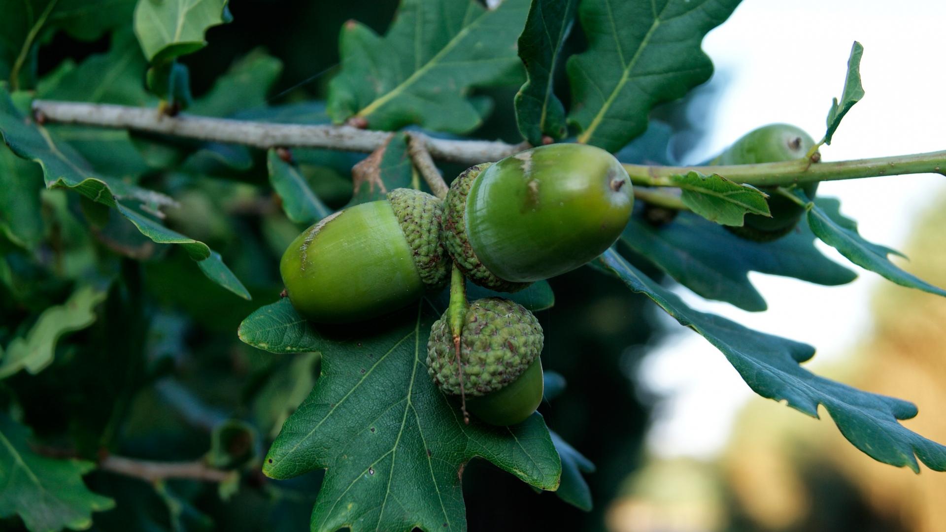 Wallpaper Green acorns on a branch