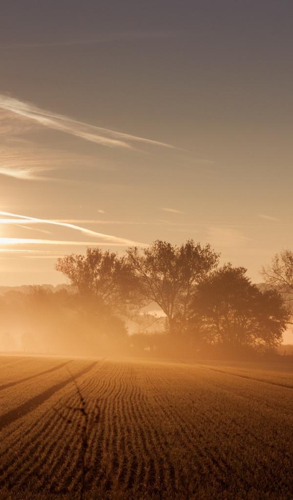 Wallpaper Sunrise and fog over the field