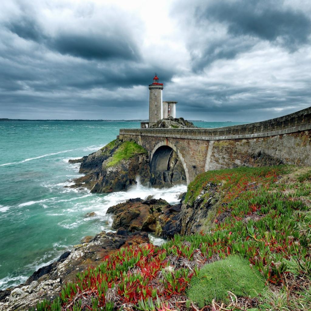 Wallpaper Lighthouse on the beach under the beautiful sky