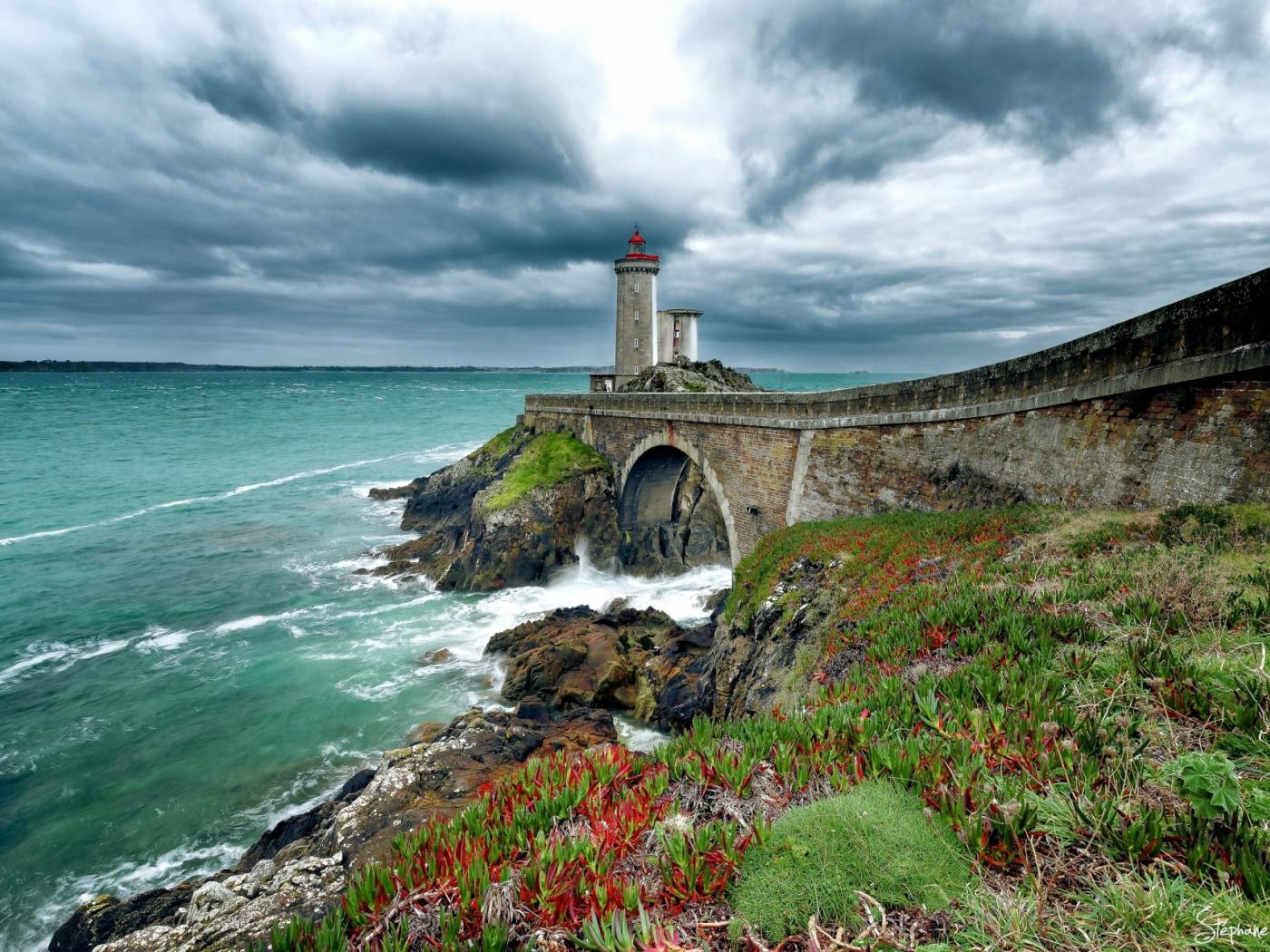 Wallpaper Lighthouse on the beach under the beautiful sky