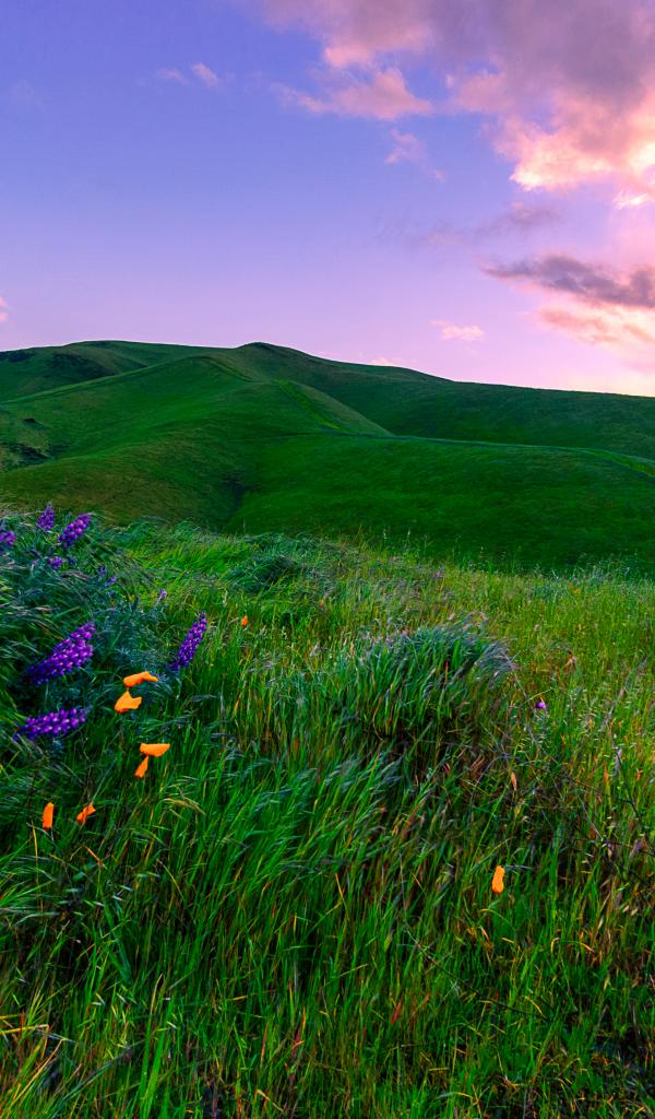 Wallpaper Wildflowers and green meadows against the background of mountains and blue sky, Switzerland