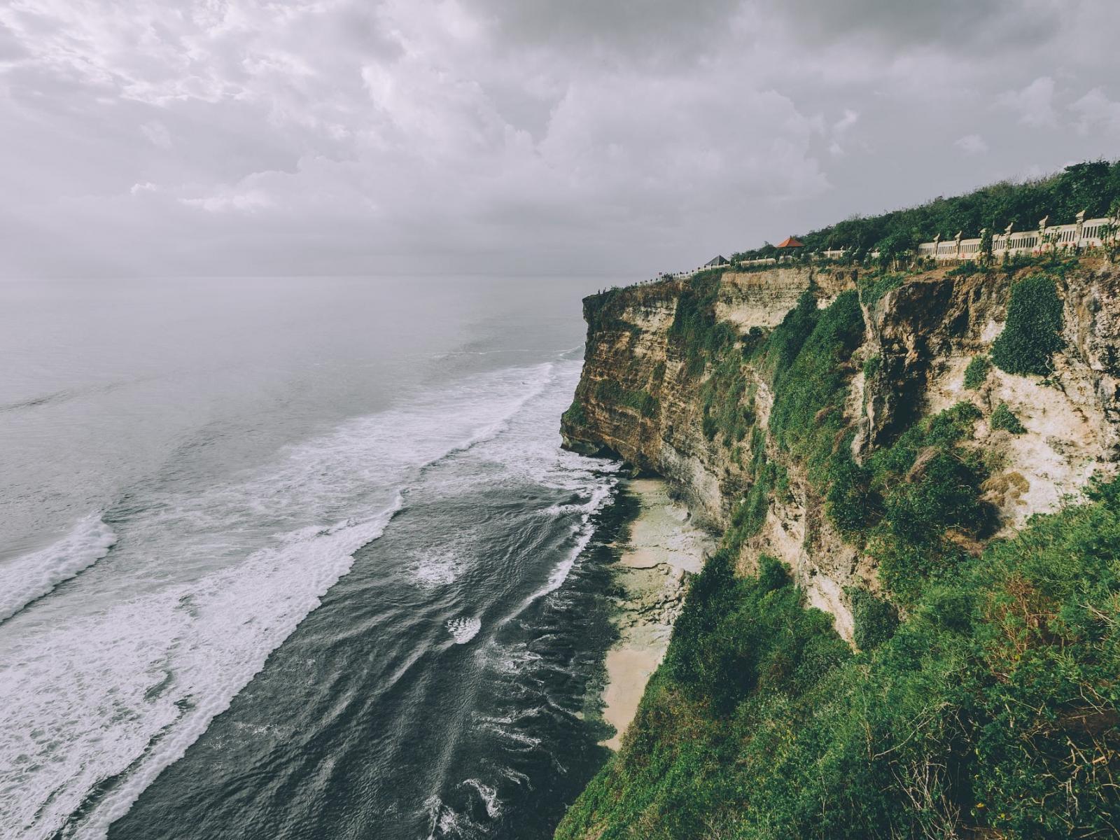Wallpaper The surging waves of a green cliff