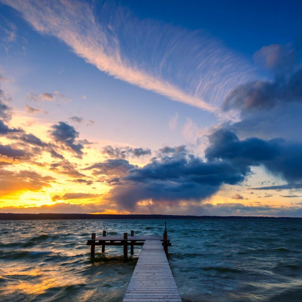 Wallpaper Bridge in the ocean at sunset