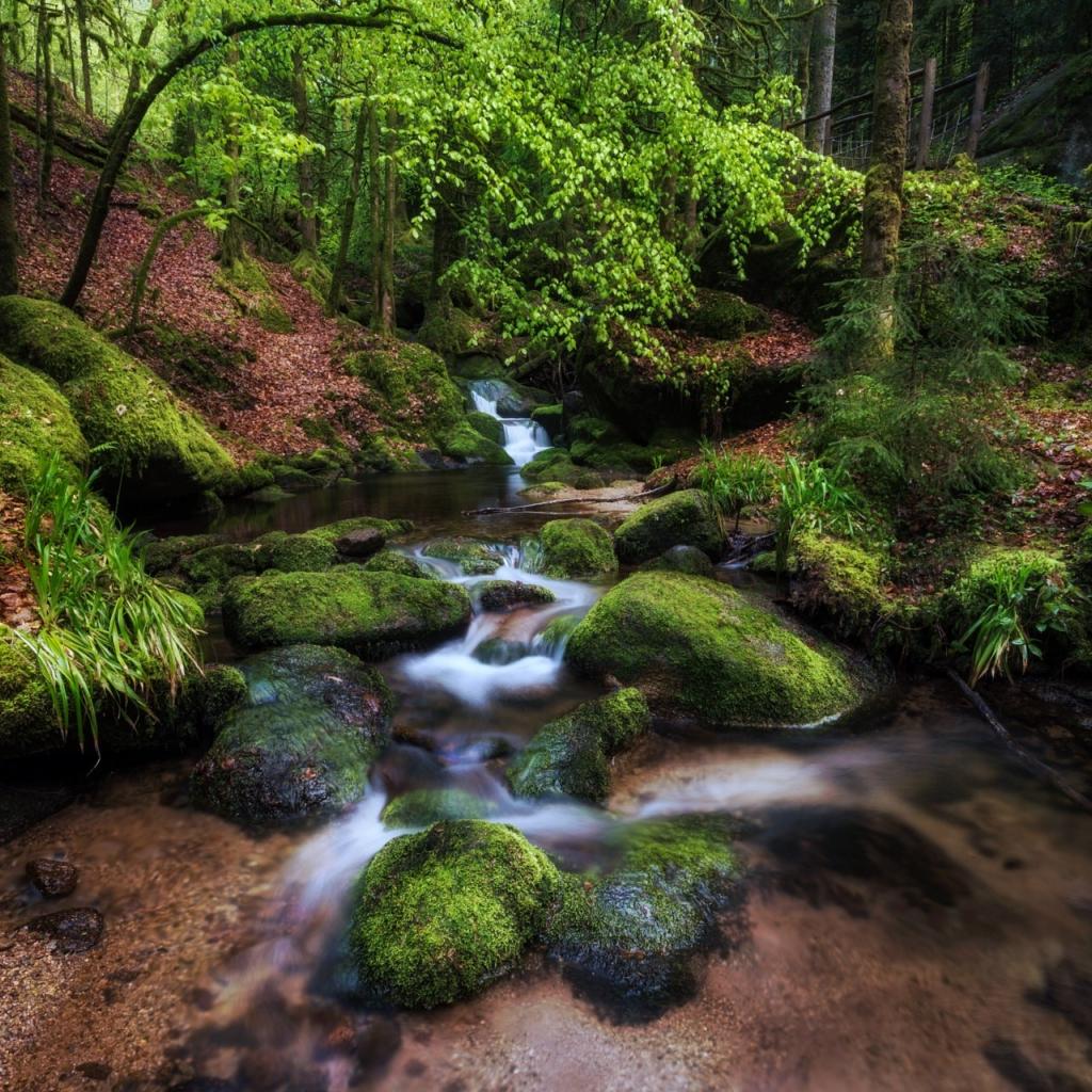 Wallpaper Clean forest stream among trees