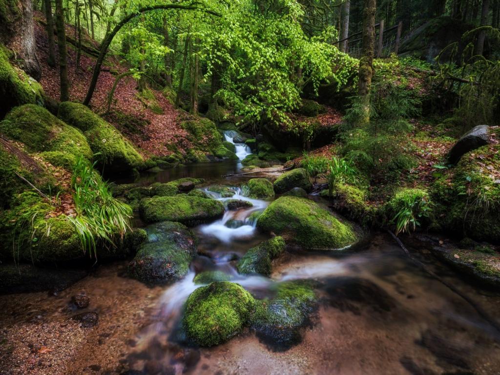 Wallpaper Clean forest stream among trees