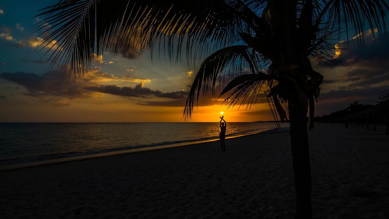 Wallpaper Sunset on a tropical beach