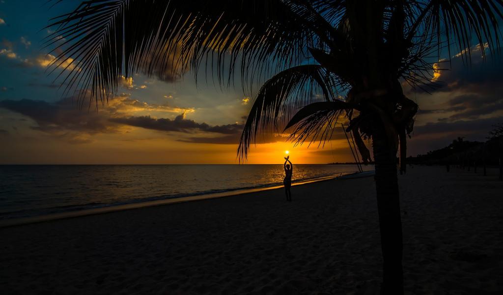 Wallpaper Sunset on a tropical beach against the backdrop of the pool