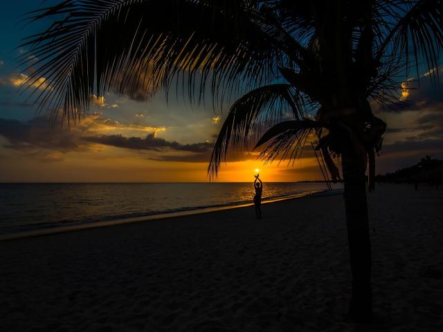 Wallpaper Beautiful sunset in the sky on a tropical beach