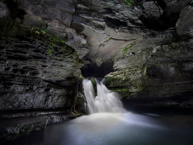 Wallpaper Fast waterfall in a stone cave
