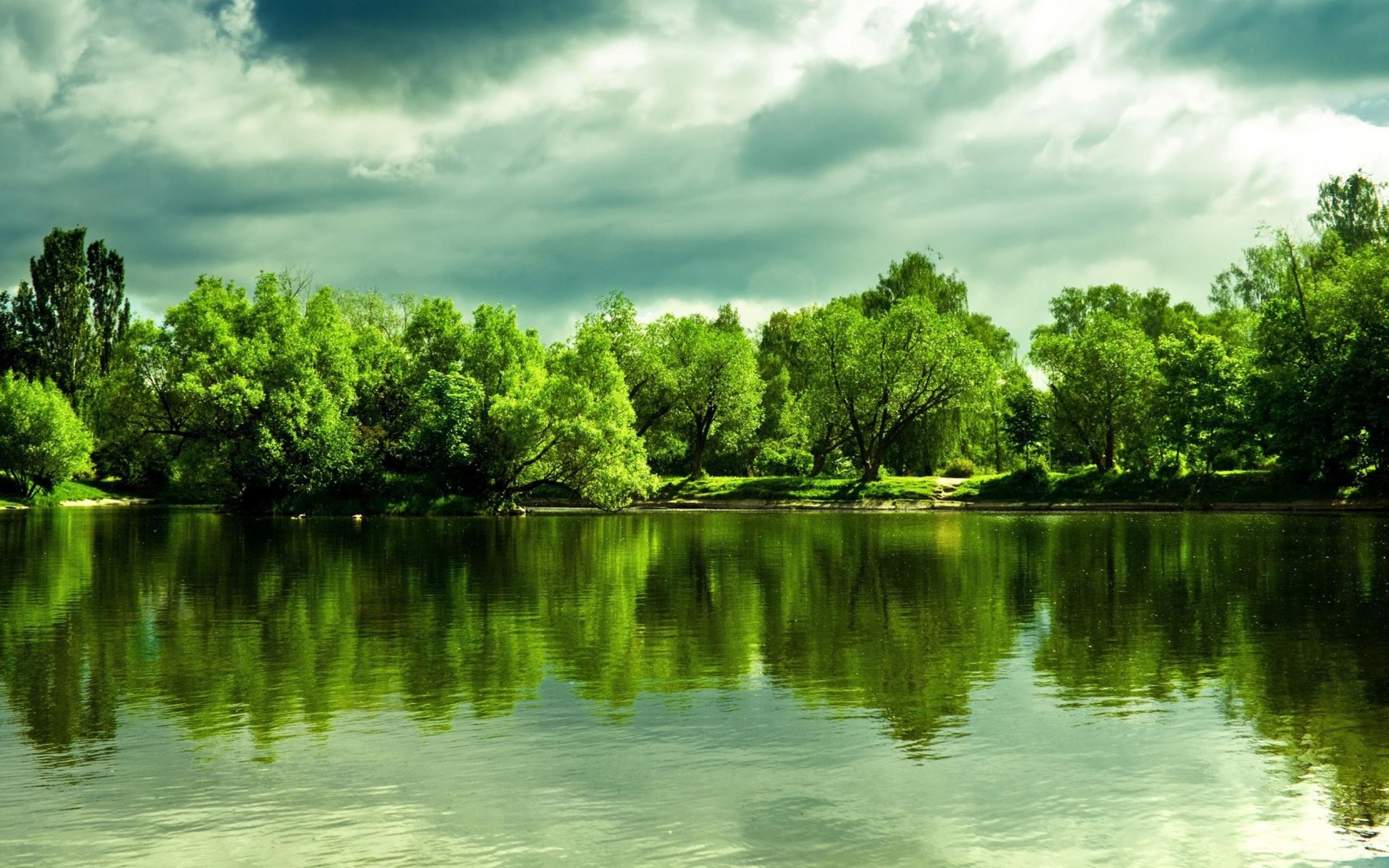 Wallpaper Green trees are reflected in the lake`s surface