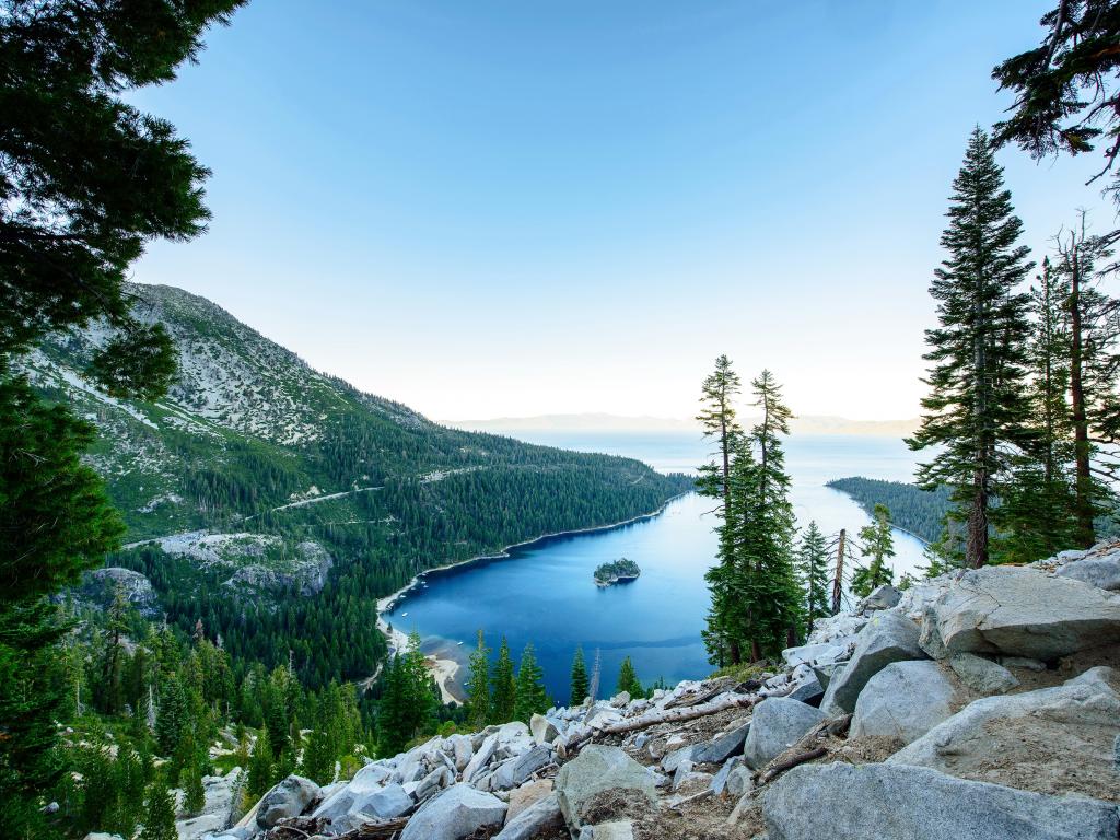 Wallpaper Picturesque mountain nature by the blue lake