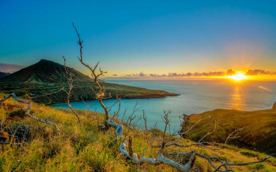 Wallpaper Sunrise of the bright sun over the ocean