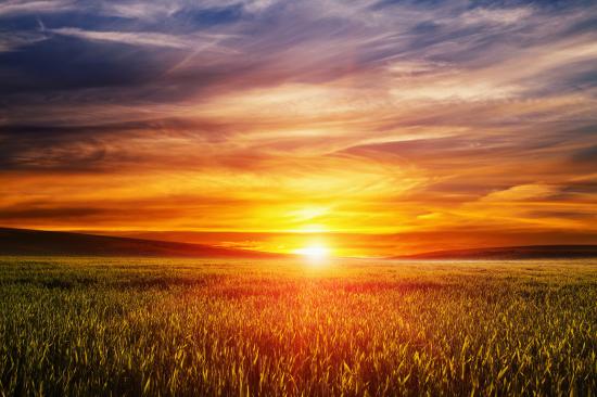 Wallpaper Sunset of summer sun over wheat field
