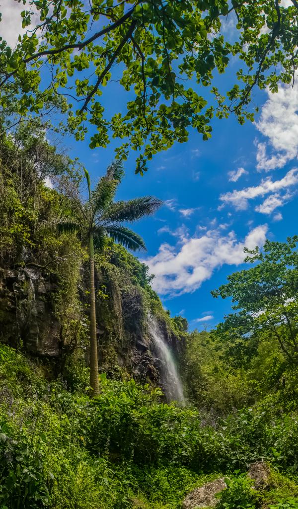 Wallpaper Waterfall in a rainforest against a blue sky