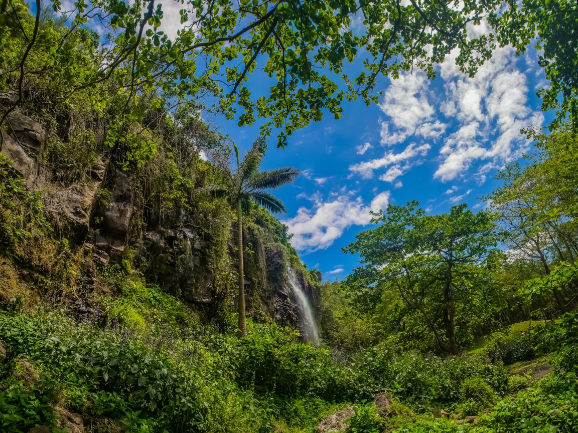 Wallpaper Waterfall in a rainforest against a blue sky