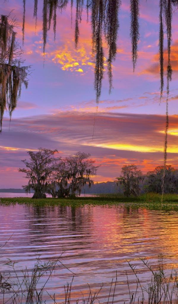 Wallpaper Beautiful sky at sunset over a forest lake