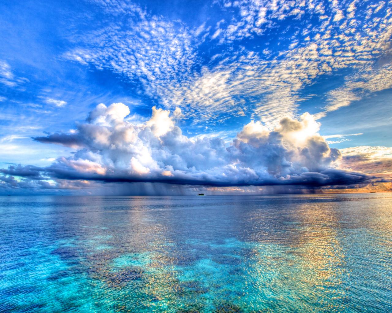 Wallpaper Beautiful clouds reflected in the blue water of the ocean