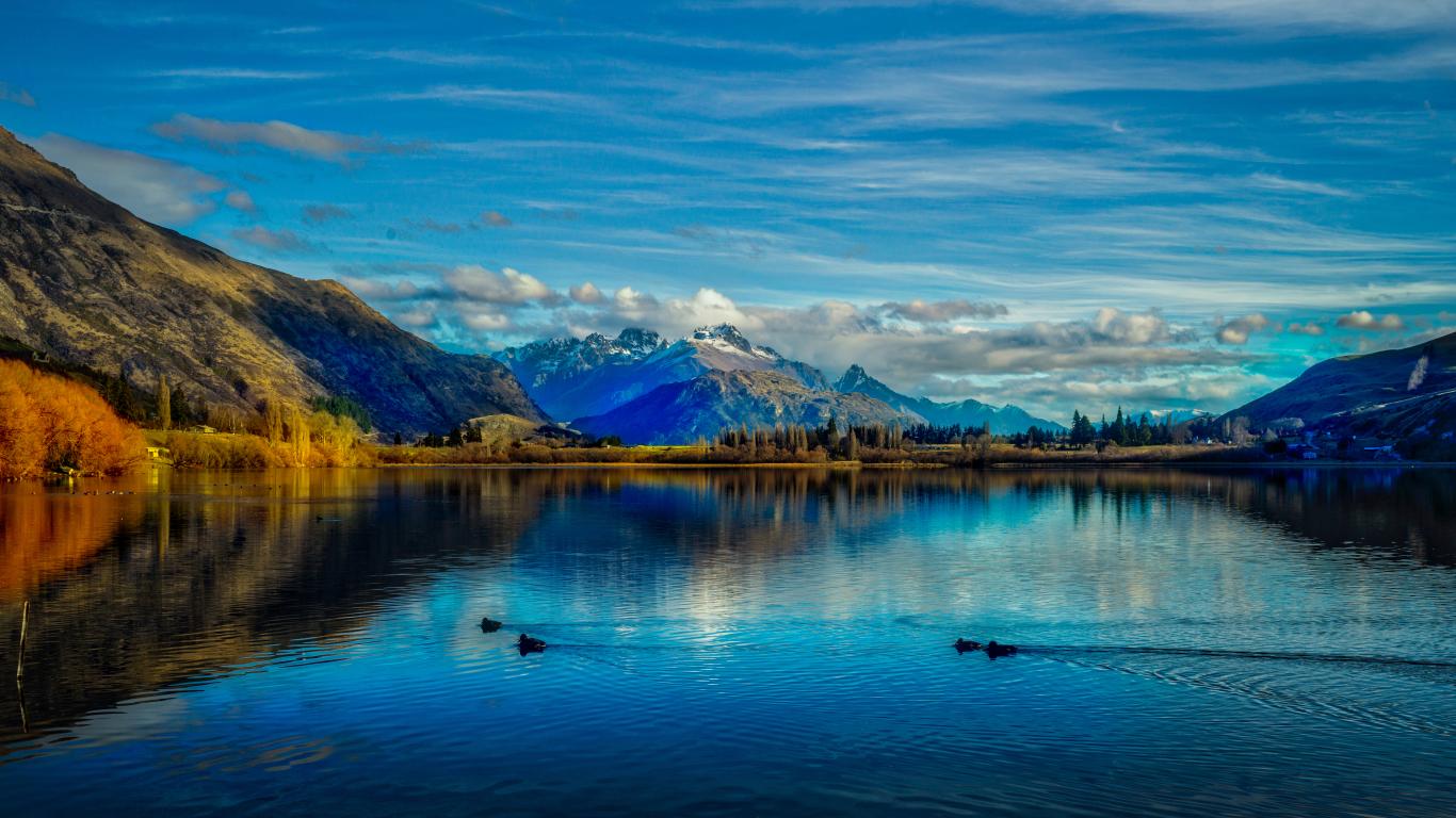 Wallpaper View of the mountains and Lake Hayes, New Zealand