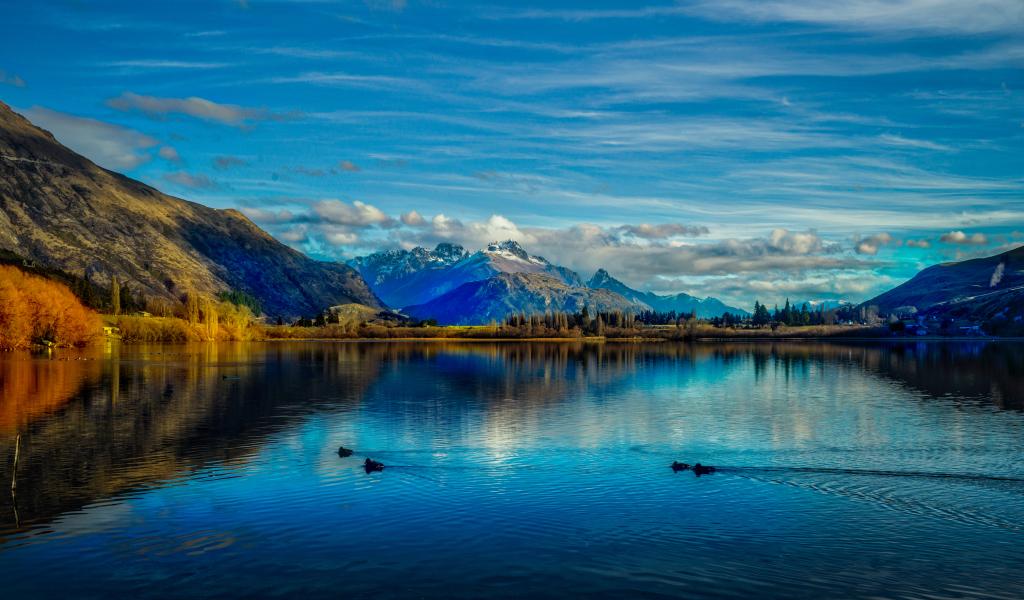 Wallpaper View of the mountains and Lake Hayes, New Zealand