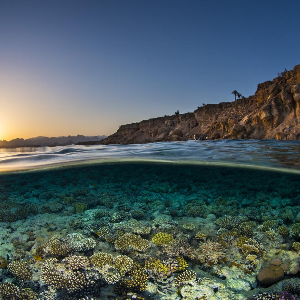 Wallpaper Corals in clear sea water in the sun at dawn