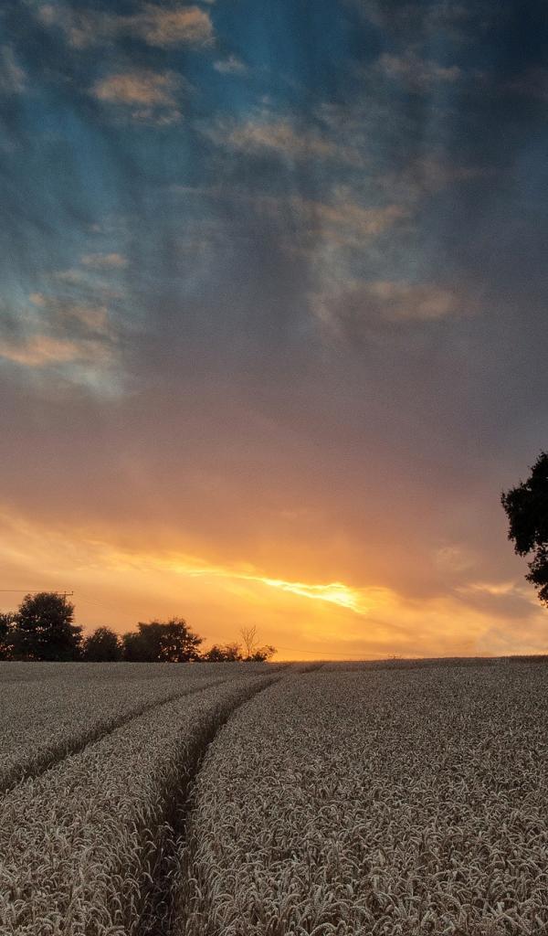 Wallpaper Field of wheat in summer under the beautiful sky at sunset