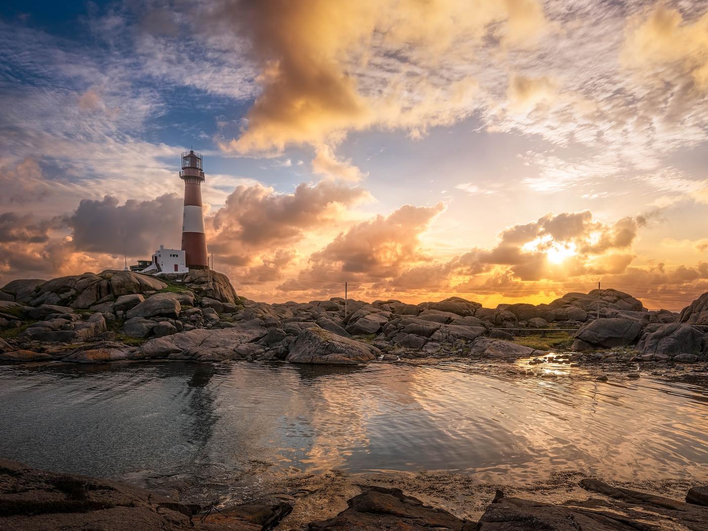 Wallpaper Lighthouse on a stone coast in the background of a beautiful sky